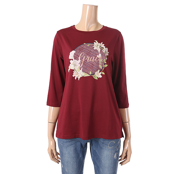부드럽고 견고한 수피마 소재의 7부 소매 티셔츠로 여성스러운 모티브가 다양하게 연출 가능한 아이템입니다.