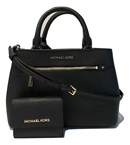 MICHAEL Michael Kors Kellen Hailee XS Satchel bundled with Michael Kors Jet Set Card Case ID Wallet (Black)
