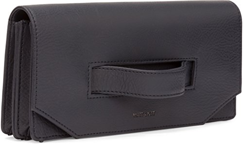 Clutch featuring flap closure with cutout for handle. Three interior compartments, center with zipper closure. Accordion sides. INTERIOR: 6 card slots, logo-embossed Dwell tag. 100% recycled nylon liningFeature