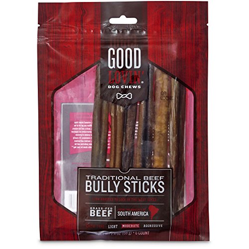 -. Binding : Misc. -. Brand : Good Lovin' -. EAN : 0800443272862 -. Feature : Traditional Beef Bully Stick Dog Chews from Good Lovin' / Slow roasted grass-fed beef to lock in the meat juices / Chew Type, Moderate / From the ranches of South America / Satisfies their instinct to chew -. Label : Good Lovin' -. Manufacturer : Good Lovin' -. MPN : 2729381 -. PackageQuantity : 1 -. PartNumber : 2729381 -. ProductGroup : Pet Products -. ProductTypeName : PET_SUPPLIES -. Publisher : Good Lovin' -. Studio : Good Lovin' -. Title : Good Lovin' Traditional Beef Bully Stick Dog Chew, 7-inch, Pack of 6 -. UPC : 800443272862