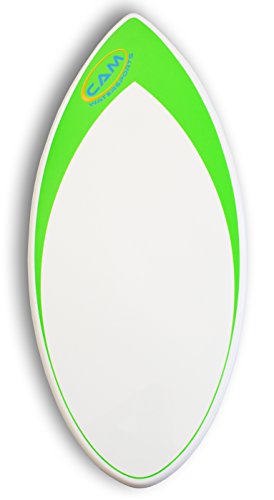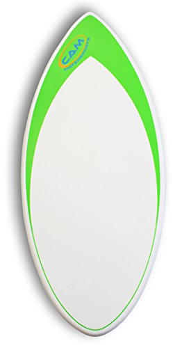 Studio : CAM Watersports Publisher : CAM Watersports Product Description Our Skimboards come in two sizes, the 44" and the 48". Our 44" Skimboards are best for riders weighing under 100 pounds, and our 48" Skimboards are best for riders weighing over 100 pounds. Five skimboard color designs to choose from. These skimboards are very light weight, and have great float, which keeps them on top of the water for extra long rides when doing flatland skimming. Also great for use with the SkimShotTM. The lightest you will find anywhere. Other companies won't tell you their weight since they are usually much heaver due to the cheaper materials they use. Our special composite CAM Fiber materials are super light weight and super strong, and that's what makes ours the best. Weight = 4.1 pounds 0