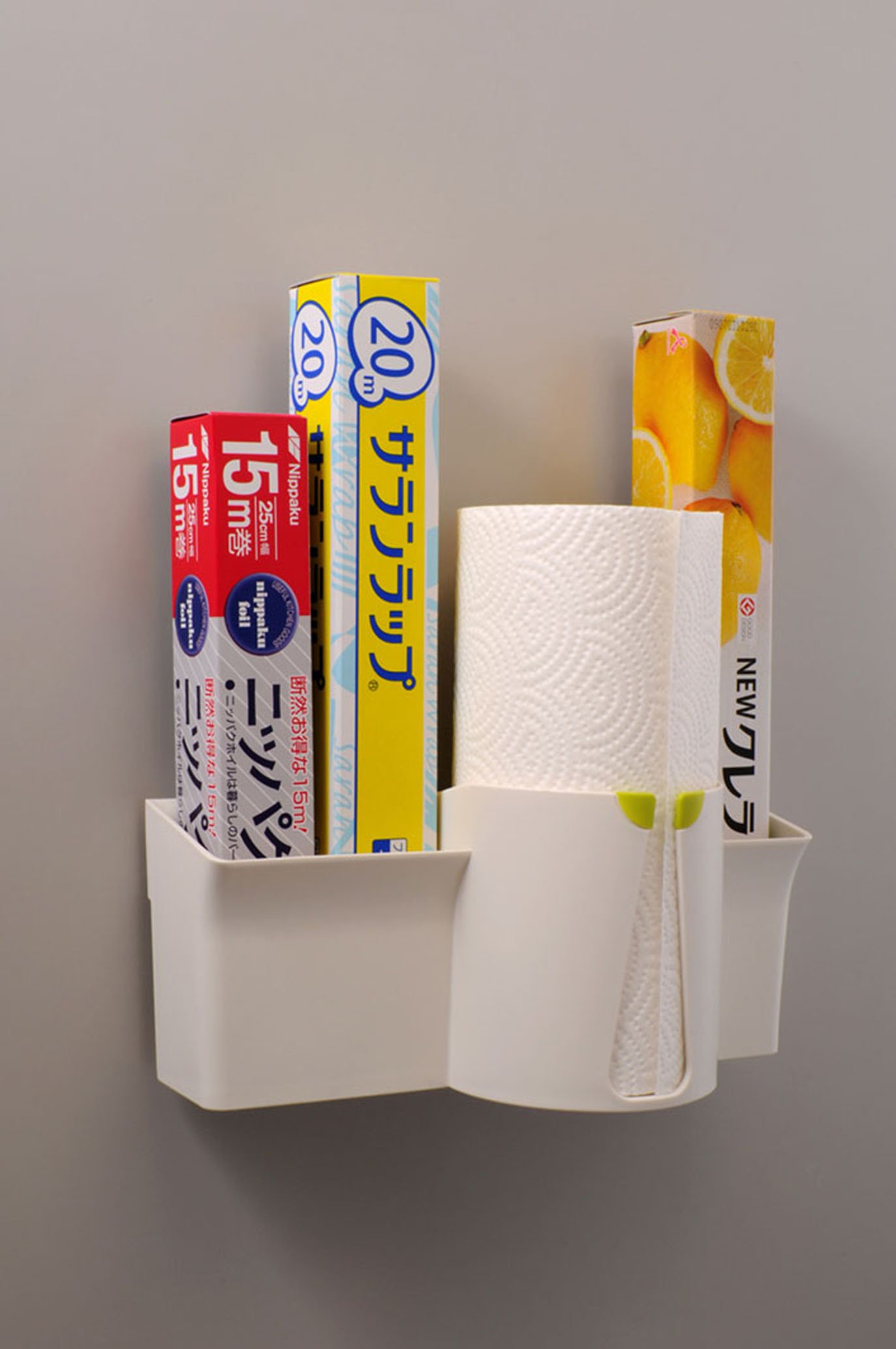 You can store wraps and kitchen paper in one line.