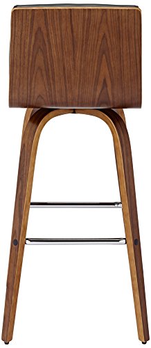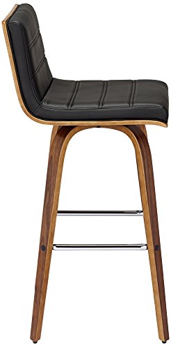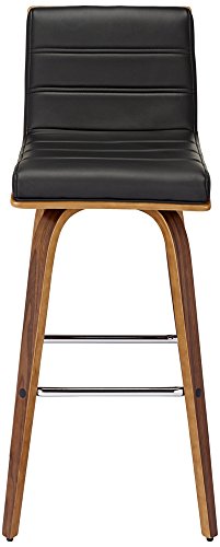 -. Feature : Modern bar height stool. / Black faux leather. / Walnut finish. / Veneered MDF construction. / Channel stitching on cushion.