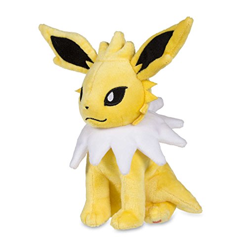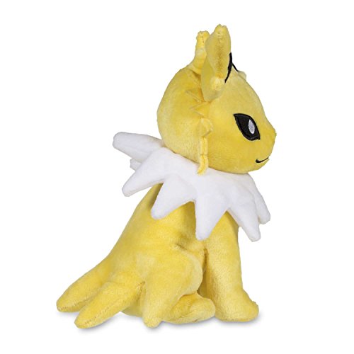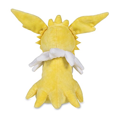 Shockingly terrific Electric-type Poké Plush! This Jolteon plush has a sweet white ruff with neatly stitched zigs and zags, and pretty much perfect ears. A watchful pose and a wee bit of attitude: that's Jolteon!Feature