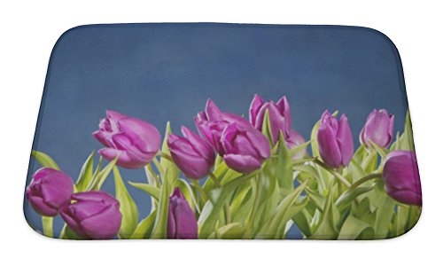 Gear New Tulips Pink Flowers on Blue Studio Bath Rug Mat No Slip Microfiber Memory Foam