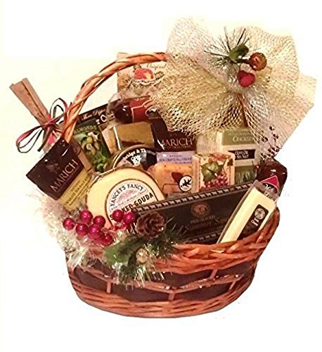 -. Feature : A delightful gourmet gift with a variety of 4 gourmet cheese, sausage, salami, mixed nuts, flatbreads & crackers, chocolate sea salt cashews, smoked almonds, fruit candy bon bons, a taste of Belgian Chocolates and more. / Perfect for gatherings during the holidays or anytime you wish to convey your message to someone special. / Wrapped with clear cellophane, ribbon and your gift message card. / A delicious gift for many occasions including Housewarming, Appreciation and Corporate Gifting. / Approximate Size: 16 x 12