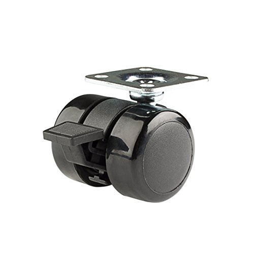 Twin Wheel Caster Solutions TWUN-37U-P02-BK-B 1.5" Diameter Urethane Unhooded Brake Twin Wheel Caster, 1.5" x 1.5" (BH 1 x 1") Plate, 110 lb Capacity Range
