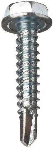 Steel Self-Drilling Screw, Zinc Plated Finish, Hex Washer Head, External Hex Drive, Sealing, Includes Washer, 1-1/4" Length, #8-18 Threads (Pack of 100)