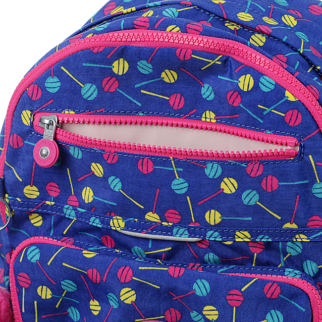 메인 지퍼 수납 공간이 2개, 전면에 지퍼 포켓과 파우치 포켓이 위 아래로 있고