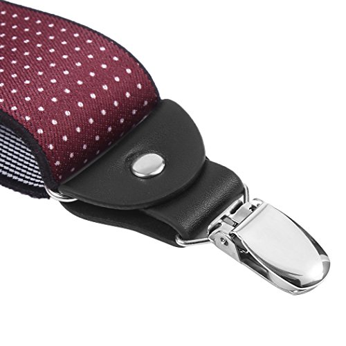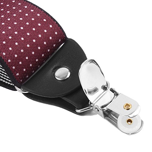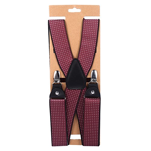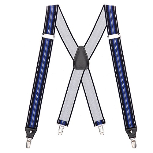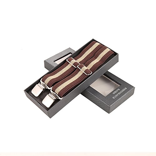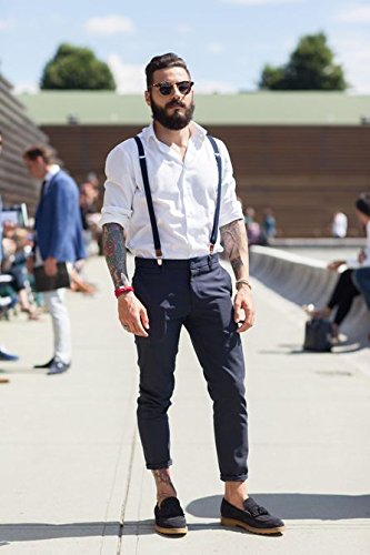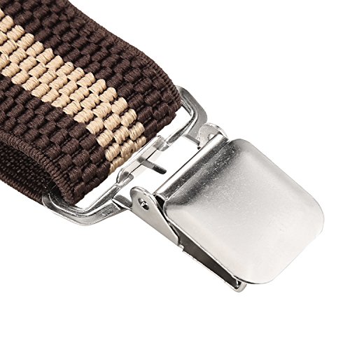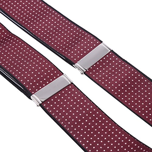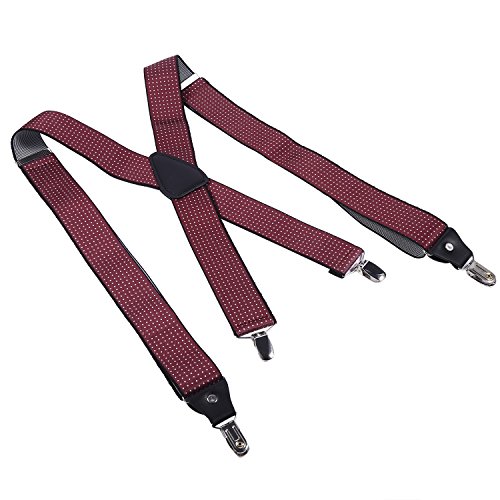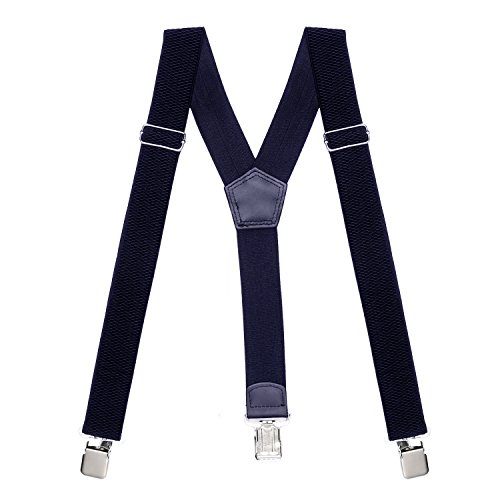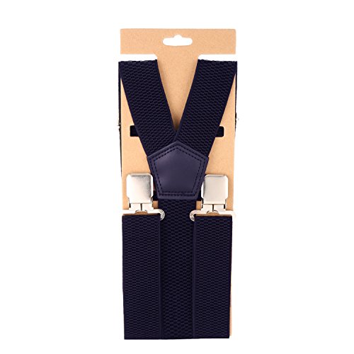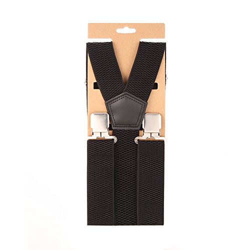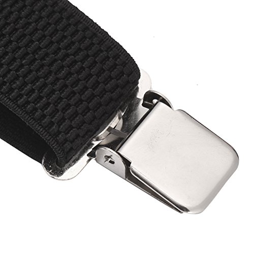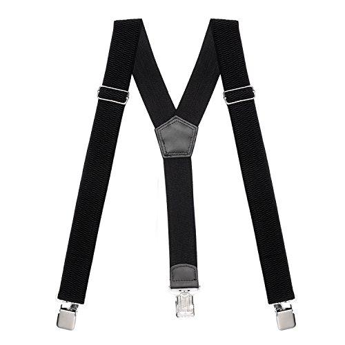? Made of elastic and durable fabric, the great braces can last for a long time ?1.4" width insures comfort over the shoulders ?44" length with elastic and adjustable strap, give you an easy time adjusting your cloth ?3 Finger Clips are flexible and solid, hold your pants from falling down ?Solid color design make you a classic and stylish outlook ?Made of elastic and durable fabric, the great braces can last for a long time