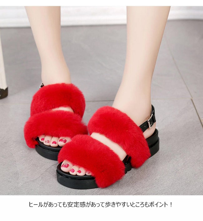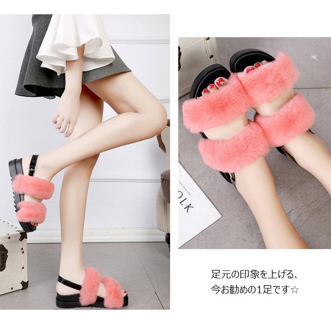 | 商品名 | ベルトファーサンダル ラビットファーサンダル ファーサンダル 厚底サンダル レディース スリッパ ダブルベルト ボア オシャレ 2017秋新作 春夏 |
