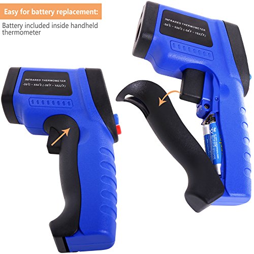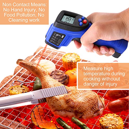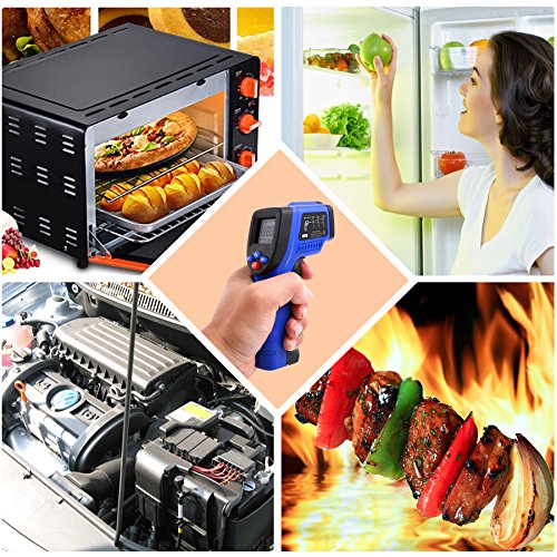 - MULTI-FUNCTION - Koeson FDA Approved Temperature Gun safely measure temperatures from -50°C~550°C(-58°F~1022°F) without contacting with the surface and less than 500ms response time. Handy to household use or industrial measurements. able to effortlessly measure high temperatures, hazardous and inaccessible objects, and even moving targets; such as hot engine parts, cooking surfaces, swimming pools, bath water, wine coolers, hot asphalt, electric bearings, and much more.