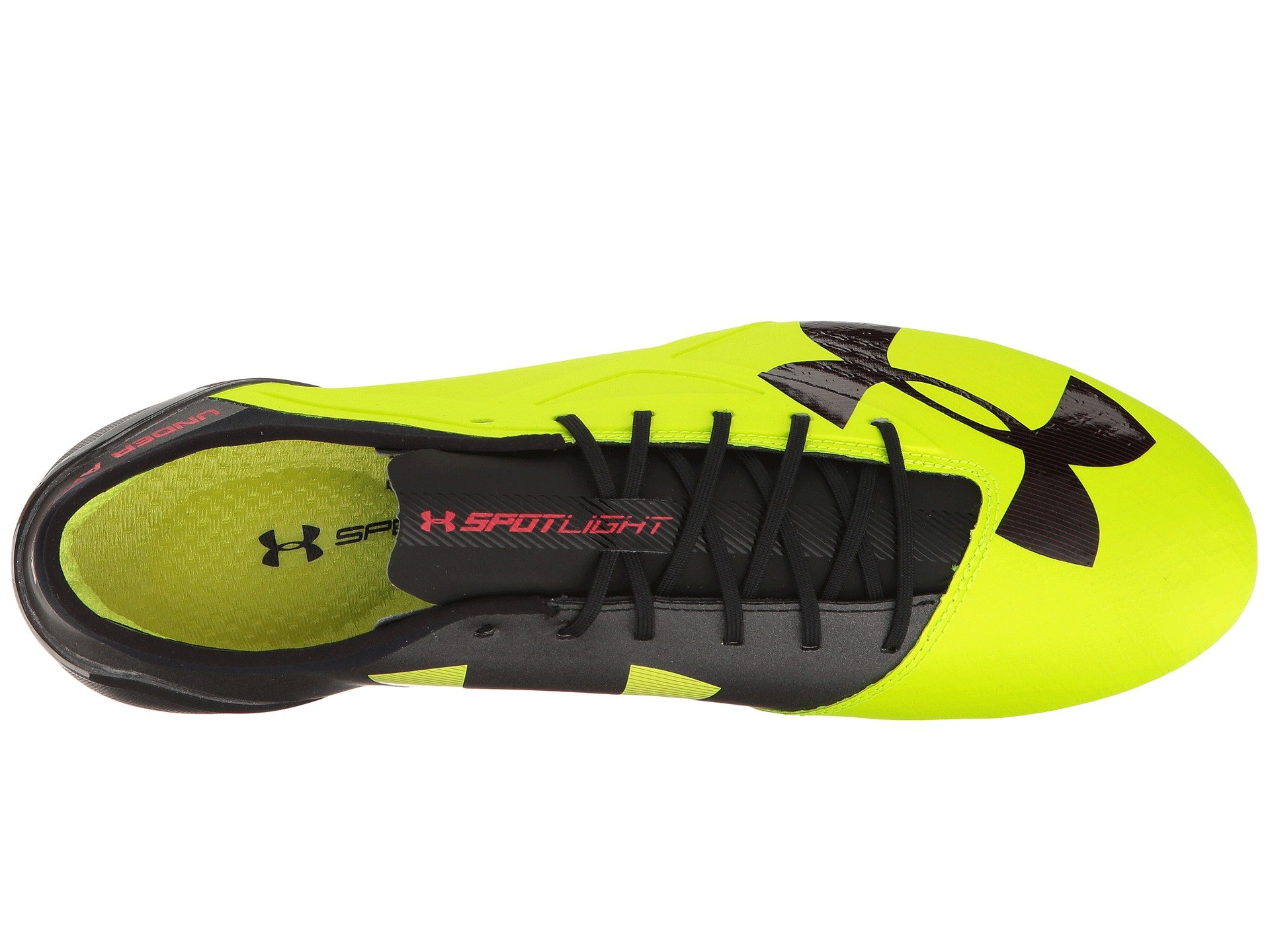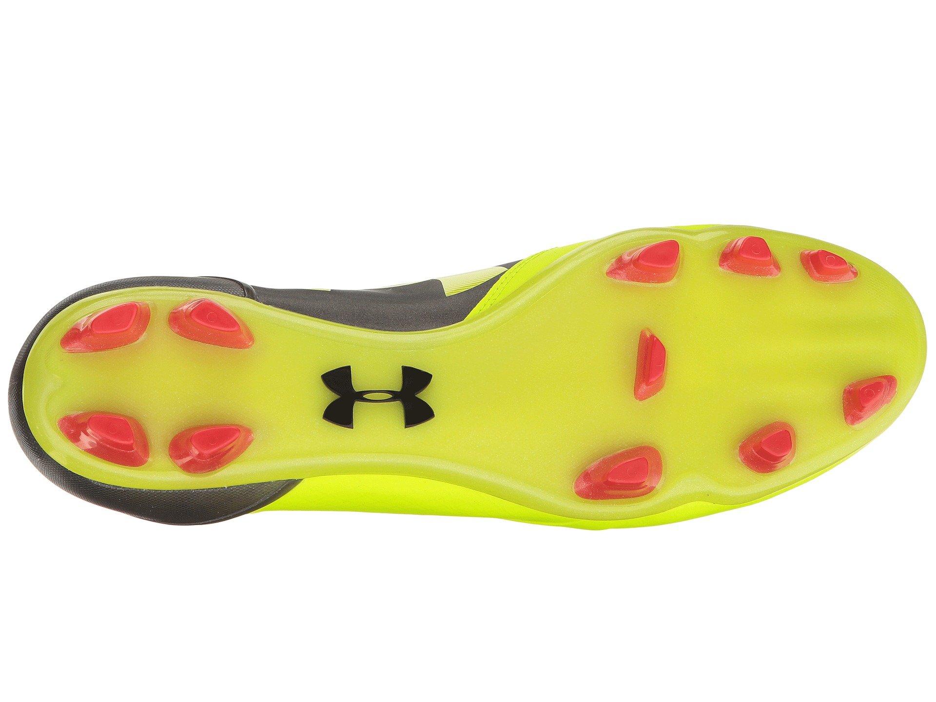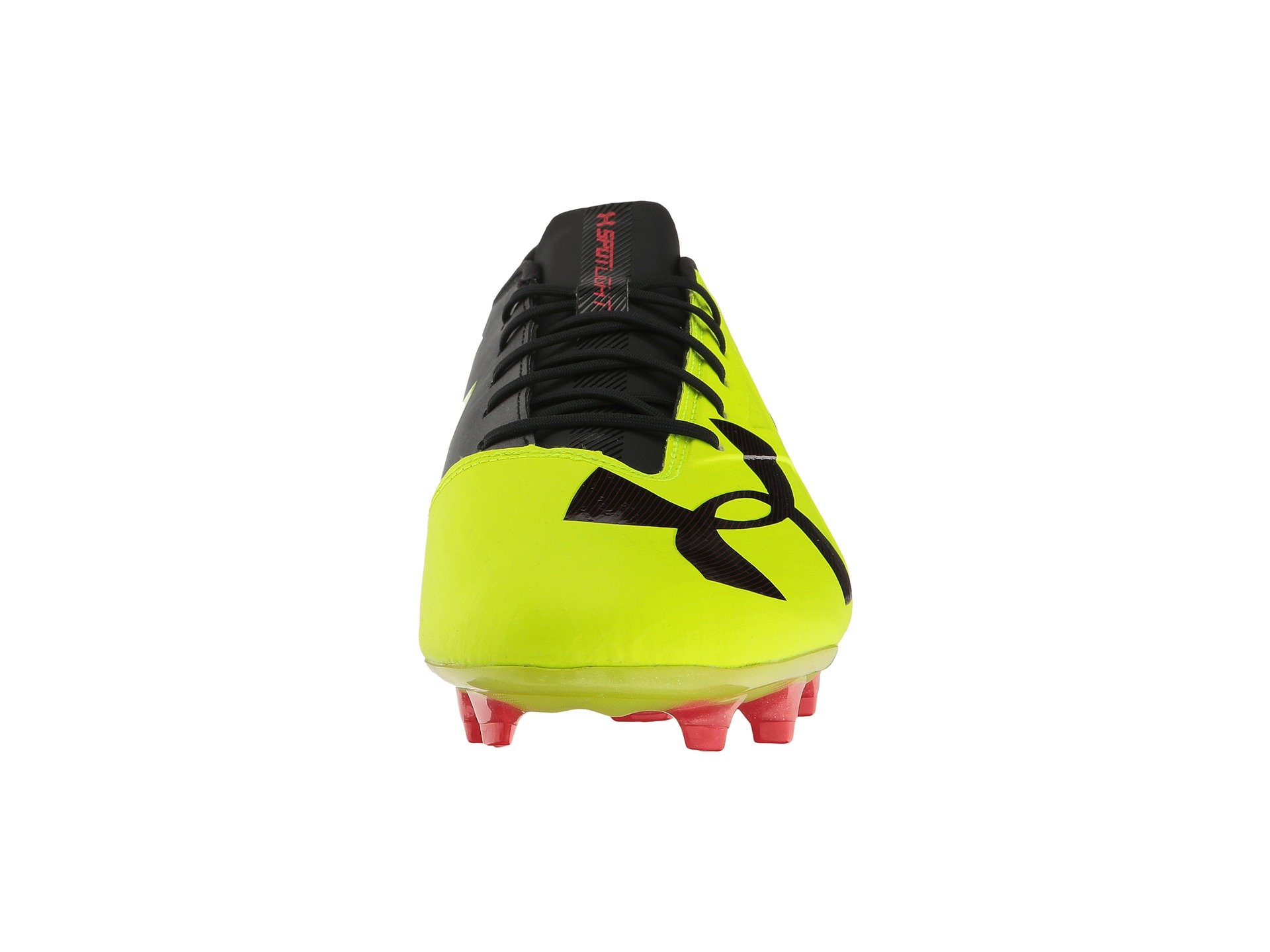 | Product Information SKU: #8673676Play from the heart and play to win each time you step onto the pitch in the Under Armour? UA Spotlight FG soccer cleat.Single-piece UA SpeedForm? upper with articulated toe box that molds to the foot for an optimal fit and feel. Secondary stretch compression supplies a great arch fit and ball control.Asymmetrical construction provides lateral support.Lace-up closure. Thin tongue and lightly padded collar. Seamless, molded heel cup.Breathable fabric lining.Footbed features a traction pad for a more secure underfoot feel. FG (Firm Ground) cleat features individual, linear stud shapes for increased traction and explosive movements over firm, natural surfaces. Imported. Product measurements were taken using size 11.5, width D - Medium. Please note that measurements may vary by size.Weight of footwear is based on a single item, not a pair.Measurements: Weight: 13 oz |