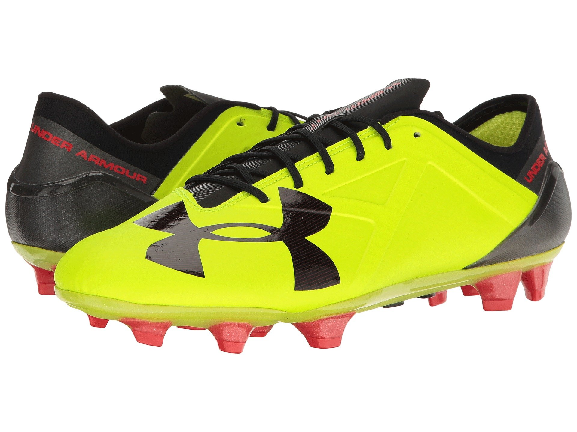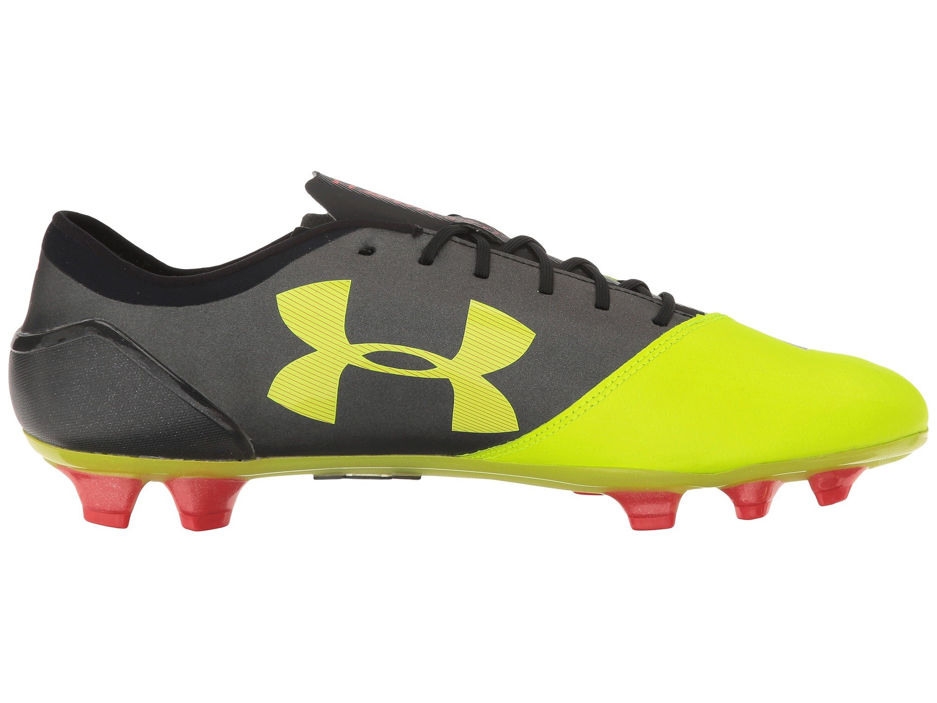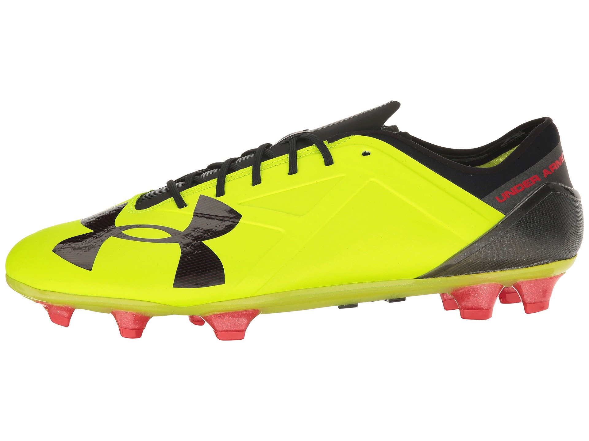 | Product Information SKU: #8673676Play from the heart and play to win each time you step onto the pitch in the Under Armour? UA Spotlight FG soccer cleat.Single-piece UA SpeedForm? upper with articulated toe box that molds to the foot for an optimal fit and feel. Secondary stretch compression supplies a great arch fit and ball control.Asymmetrical construction provides lateral support.Lace-up closure. Thin tongue and lightly padded collar. Seamless, molded heel cup.Breathable fabric lining.Footbed features a traction pad for a more secure underfoot feel. FG (Firm Ground) cleat features individual, linear stud shapes for increased traction and explosive movements over firm, natural surfaces. Imported. Product measurements were taken using size 11.5, width D - Medium. Please note that measurements may vary by size.Weight of footwear is based on a single item, not a pair.Measurements: Weight: 13 oz |