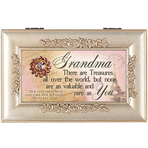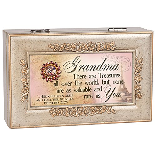 Cottage Garden Grandma Grandmother Champagne Silver Petite Rose Music Box / Jewelry Box Plays Amazing Grace