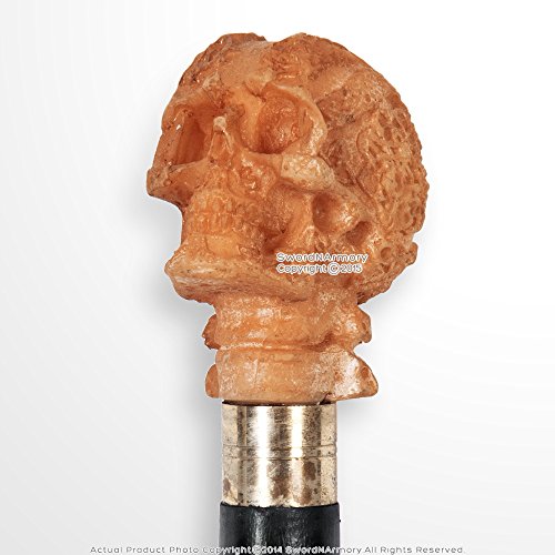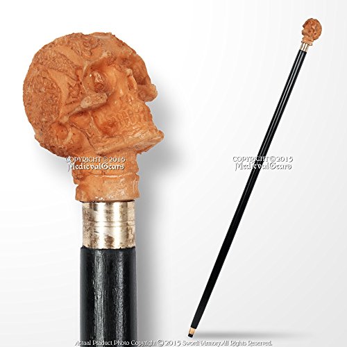 Studio : Medieval Gears Publisher : Medieval Gears Product Description This is the Black Wooden Skull Head Gentlemen's Walking Cane with Rubber Base Pad. This is a gentlemen's walking cane that measures about 36 inches long and will fit most adults comfortably. Each walking cane is made out of a solid piece of hardwood that is hand crafted and features a brass retained rubber base pad as well as a brass accented top with polyresin skull cane head. *Because each item is hand made, slight variations in size and finish may occur. 0