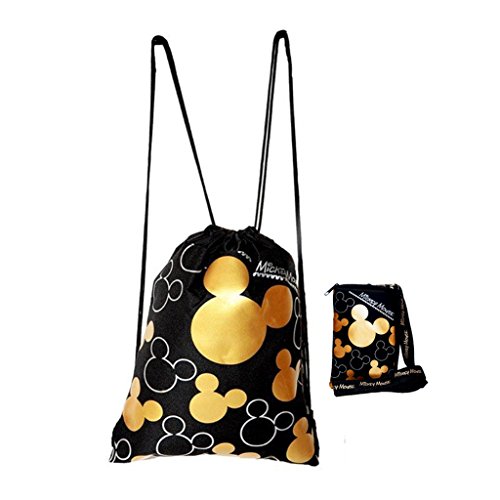 2 PACK GOLD AND BLACK DISNEY MICKEY MOUSE DRAWSTRING BACKPACK AND MICKEY MOUSE LANYARD WITH DETACHABLE COIN PURSE