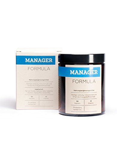 -. Feature : Die MANAGER FORMULA ist eine maßgeschneiderte Mikronährstoff-Kombination als Nahrungsergänzung aus Vitaminen, Mineralstoffen, Spurenelementen und sekundären Pflanzenstoffen in Kapselform für Menschen mit einem stressigen und arbeitsintensiven Alltag / Unterstützt Leistungsfähigkeit, Energie und Gesundheit / Einfach 1x täglich 3 Kapseln einnehmen, enthält 90 Kapseln / Unter anderem mit hochdosiertem Vitamin B komplex, Vitamin D und Vitamin C / Keine Konservierungsstoffe, keine Süßstoffe, keine Farbstoffe, keine Aromen, glutenfrei, laktosefrei, hefefrei und natürlich vegetarisch