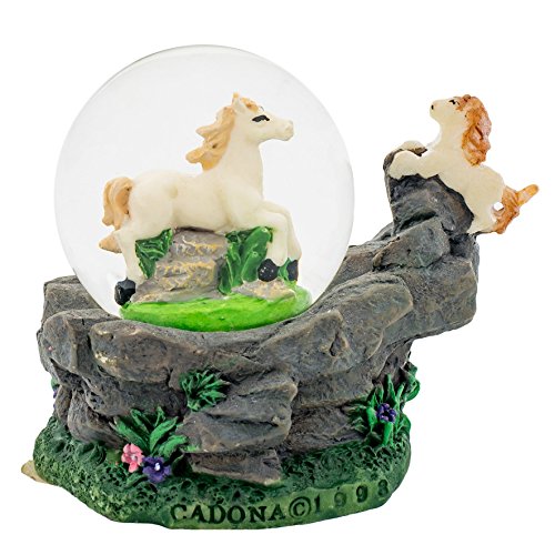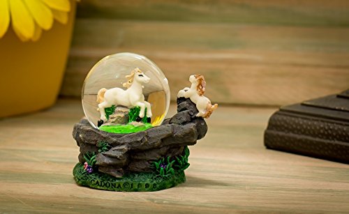 White Horses 3 x 3 Miniature Resin Stone 45MM Water Globe Table Top Figurine