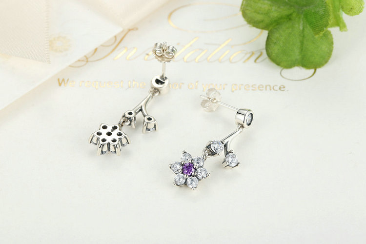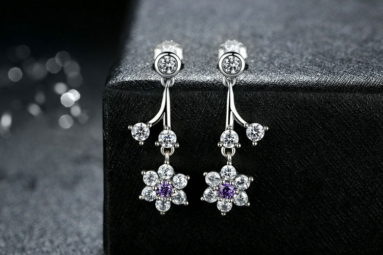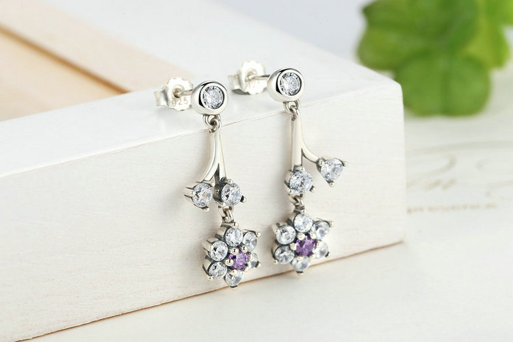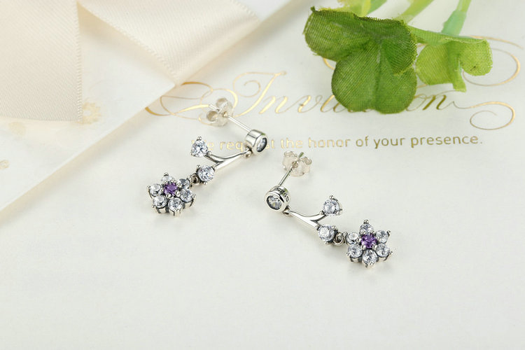 Inspired by charming forget-me-not flowers, these beautiful sterling silver drop earrings feature striking purple stones and a timeless design, making them an indispensable part of any jewelry box.