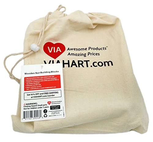 -. Binding : Toy -. Brand : VIAHART -. Feature : High quality wood, polished smooth! / Can be built into car, sailing boat, motor, jet and more with kid's imagination / Includes 30 pieces puzzles & connectors and a carry pouch that provides hours of endless play / SIZE AND WEIGHT | Product Measures 8.7 x 7.5 x 2.1 in inches | 22.1 x 19.1 x 5.4 in centimeters | Product Weighs Approximately 1.5 lbs / 0.7 kgs | These dimensions and weight do not include the packaging / 30 day no questions asked return policy and FREE returns! -. ProductGroup : Toy -. ProductTypeName : TOYS_AND_GAMES -. Title : VIAHART 30 Pcs Wooden Building Blocks Nuts Assembly Education Toy for Kids
