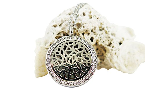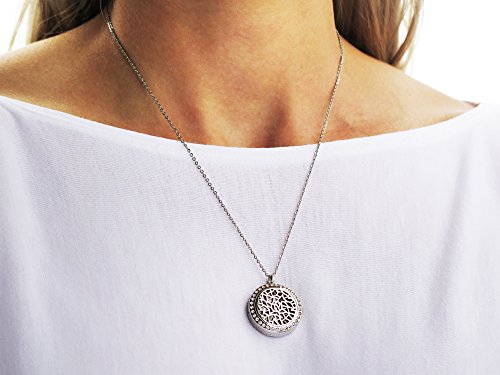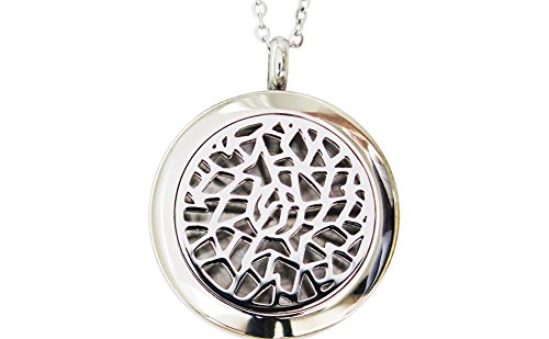 Coral Bliss Aromatherapy Diffuser Necklace with Leakproof Locket - Hypoallergenic 316L Stainless Steel Essential Oil (EO) Jewelry (Incl. 2 Chain Designs, 5 Reusable Pads, Microfiber Pouch)