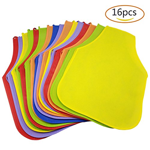 Comes in a package of 16 coloful aprons,it's include blue, orange, yellow, purple, red and green