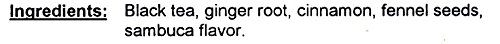 -. Binding : Misc. -. Brand : Mahamosa Gourmet Teas, Spices & Herbs -. EAN : 0847598059511 -. Feature : Loose Tea Set Incl. Chai Black Tea Blend- 2 oz Fennel Chai Black Tea / PLUS 1 Stainless Steel Tea Ball Infuser for Easy Steeping of High Quality Tea! / Perfect as a gift or for yourself! Zoom into photos to see tea/tea infuser as fully detailed below. / High caffeine; Tea is packaged in heat-sealed re-sealable tea pouch to retain freshness. / Being in the World®: Mahamosa donates 50% of after-tax net profits to charity! -. Label : Mahamosa -. Manufacturer : Mahamosa -. PackageQuantity : 1 -. ProductGroup : Grocery -. ProductTypeName : GROCERY -. Publisher : Mahamosa -. Size : 2 Ounces -. Studio : Mahamosa -. Title : Mahamosa Chai Black Tea Blend and Tea Infuser Set: 2 oz Fennel Chai Black Tea, 1 Stainless Steel Tea Ball Infuser (Bundle- 2 items)(Tea Ingredients: Black Tea, ginger root, cinnamon and fennel seeds with sambuca flavor) -. UPC : 847598059511
