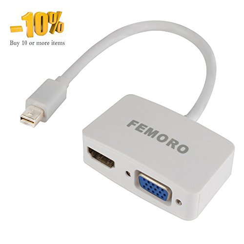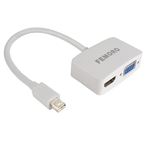 Mini Display to VGA HDMI Adapter 2-in-1 Converter, FEMORO MDP Displayport to HDMI VGA Adapter (Thunderbolt Compatible)DP 1080P Splitter for Apple, Mac MacBook Air Pro,Surface Pro3 Lenovo HDTV