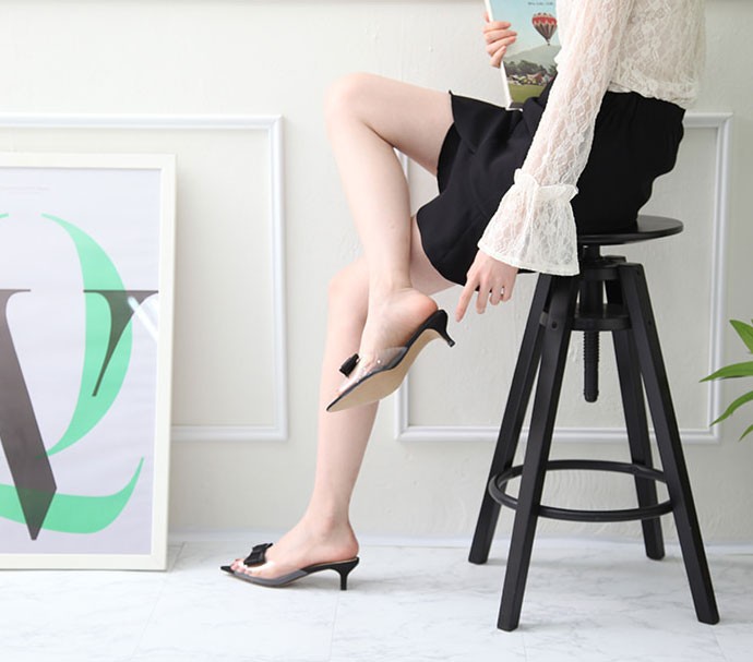 商品名:サンダル レディース ミュール リボン ピンヒール ローヒール 2018 春 ファッション 靴 婦人靴