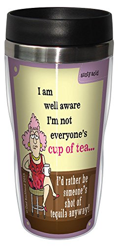 Tree-Free Greetings 16-Ounce Sip 'N Go Stainless Lined Travel Mug, Aunty Acid Cup Of Tea (SG78603)
