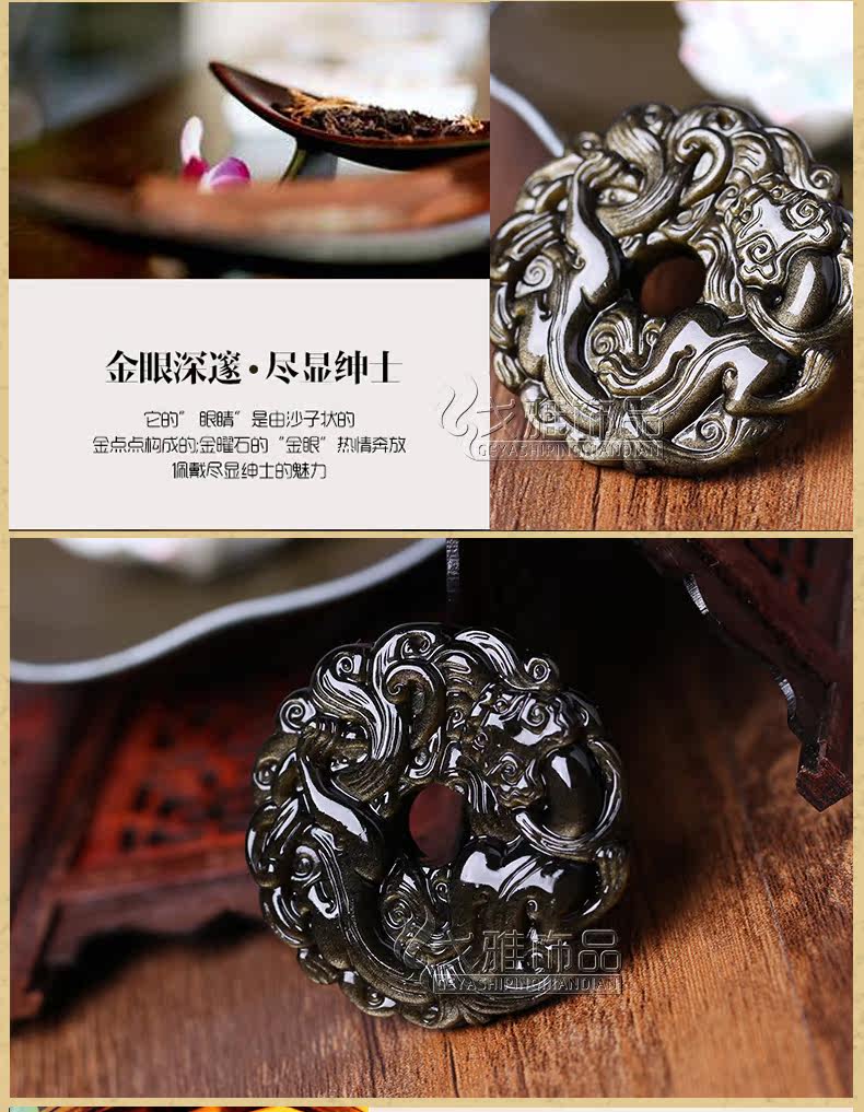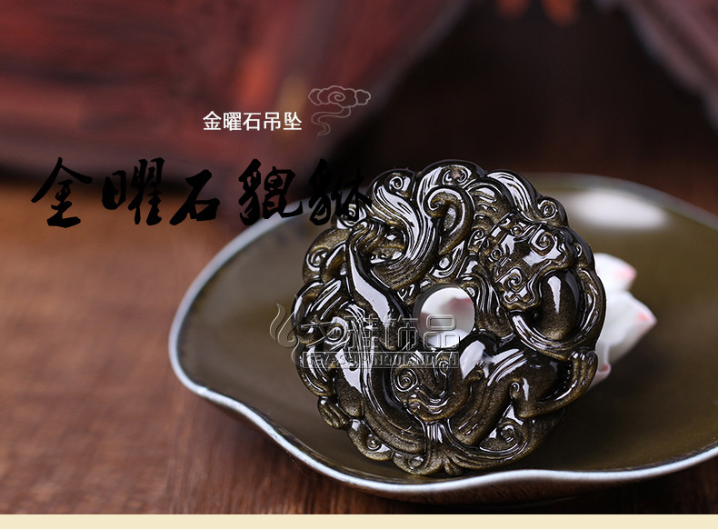 天然金曜石貔貅吊坠 金沙黑曜石平安扣男女款