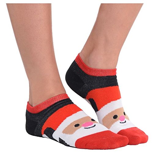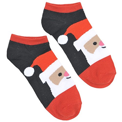 Fun-Filled Smiling Santa No Show Socks , Black/Red, Fabric
