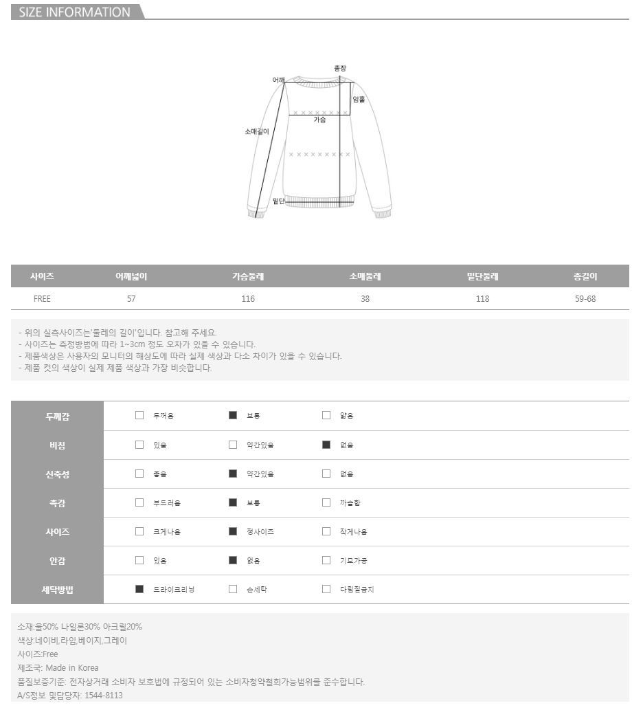 | 특이 사항 | 배송, 변경, 반품 환불에 대한 문의는 위 연락처로 문의 주세요. | ||