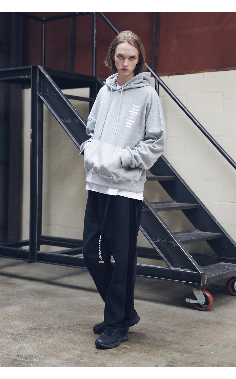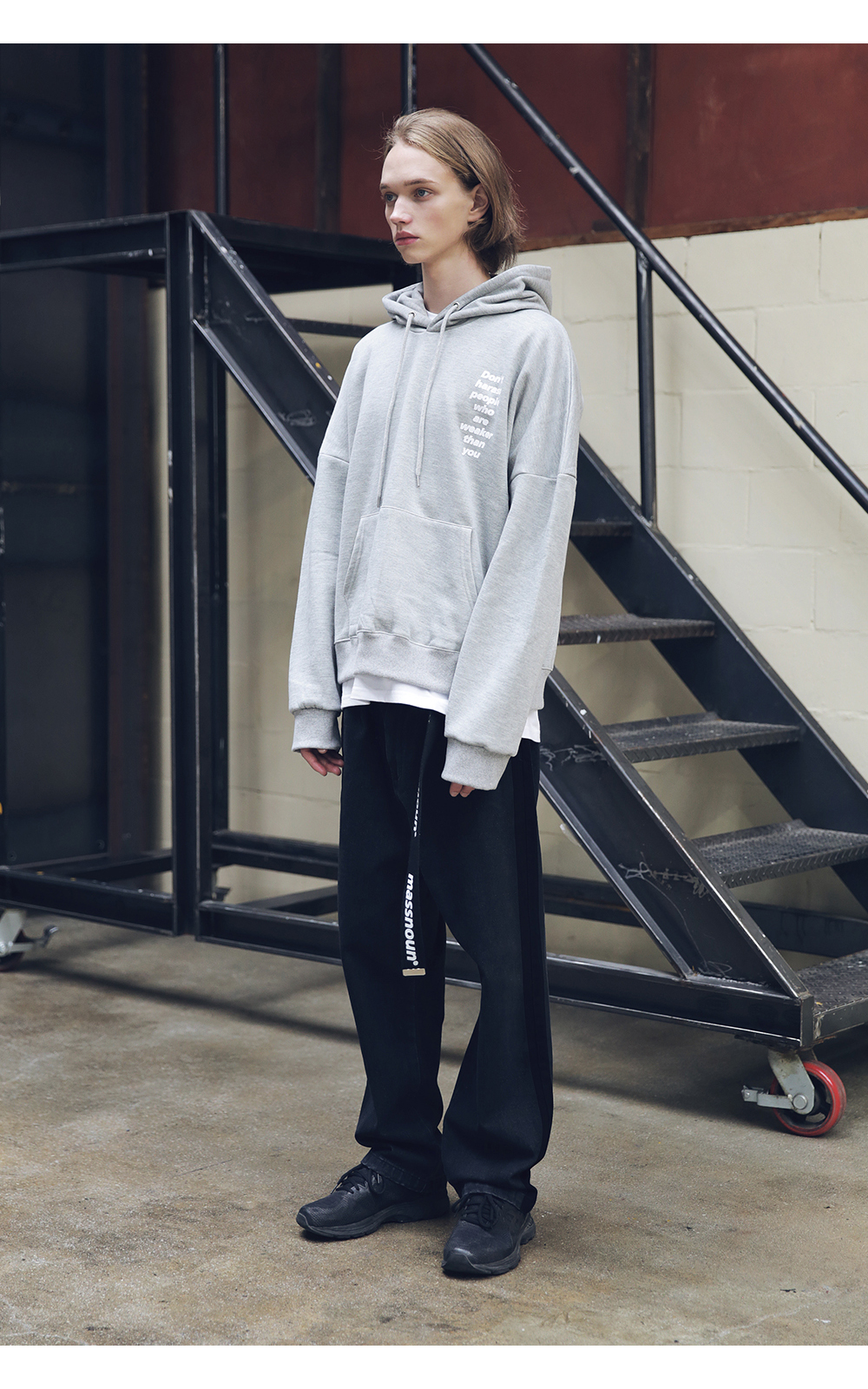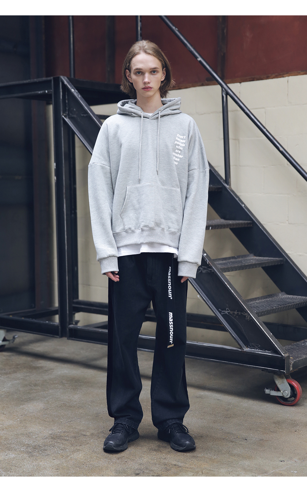 유니섹스 아이템으로 여러 체형에 잘 어울릴 수 있도록 전체적인 라인의 형태와 핏감처리에 중점을 둔 루즈 와이드nbsp;핏 제품입니다.