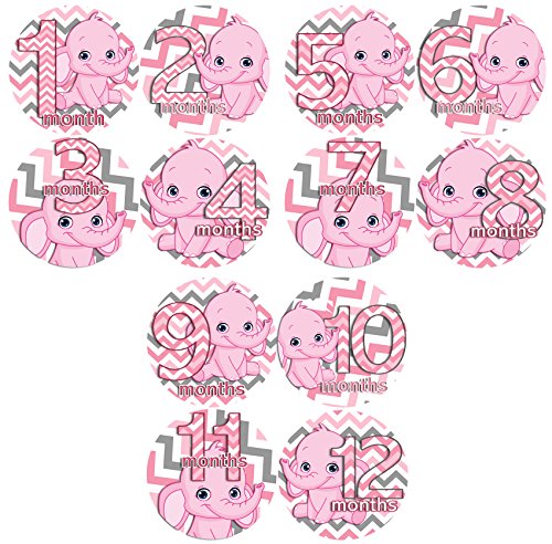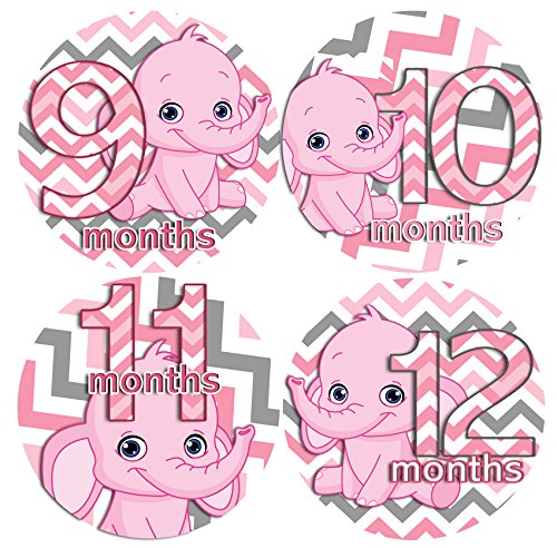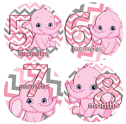 -. Title : PINK GIRL CHEVRON ELEPHANTS Baby Month By Month Stickers - Baby Month Onesie Stickers Baby Shower Gift Photo Shower Stickers