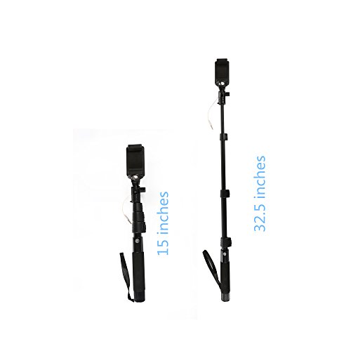 Safe and Convenient: Length adjustable from 15in to 32.5in, no need twisting to Lock or unlock the length.Three quick release clips help extend the selfie stick and lock.