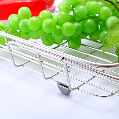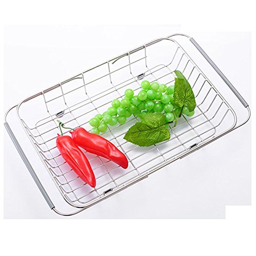 - DIMENSIONS - The basket is 13"L x 9.8" W x 2.3'' H, with handles fully extended it is 17.5" long in order to fit most sinks, Takes up only a little space, saves space on the counter.