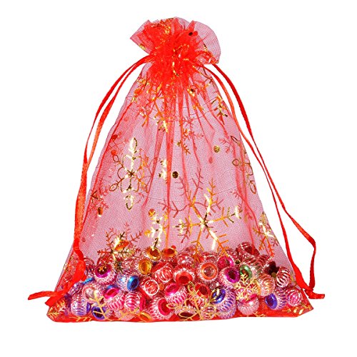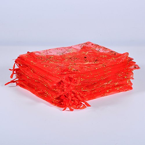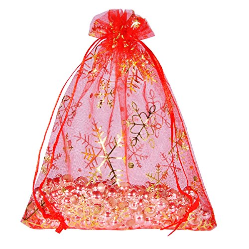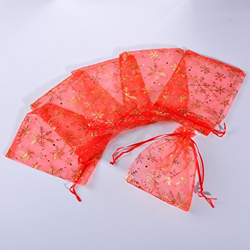 Housweety 25PCs 12cmx16cm Red Snowflake Organza Gift Bags Pouches Wedding/Christmas Gift