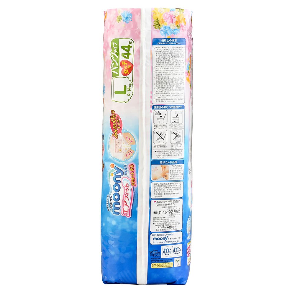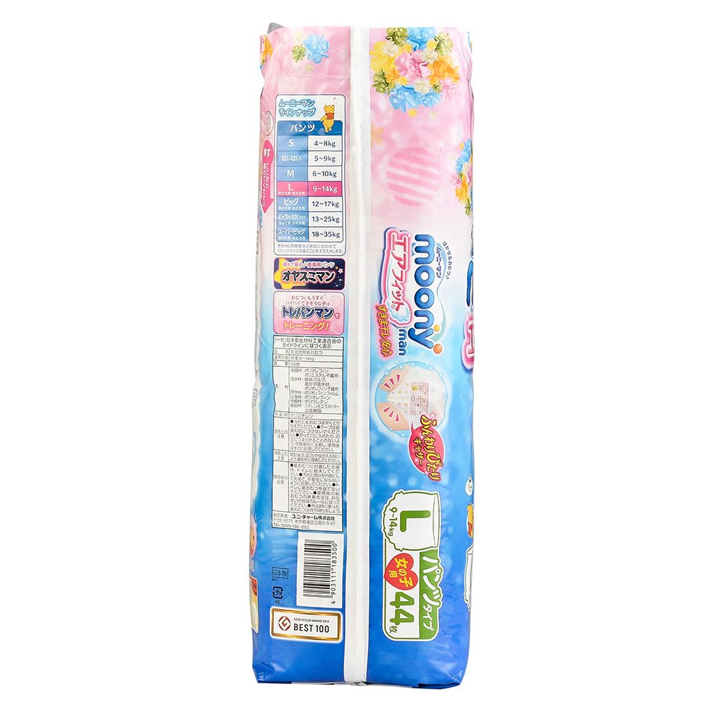 unicharm | Diapers | moony for girl underware-style L-size 44 sheets [ Japanese Import ]