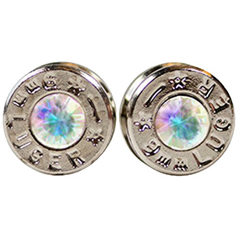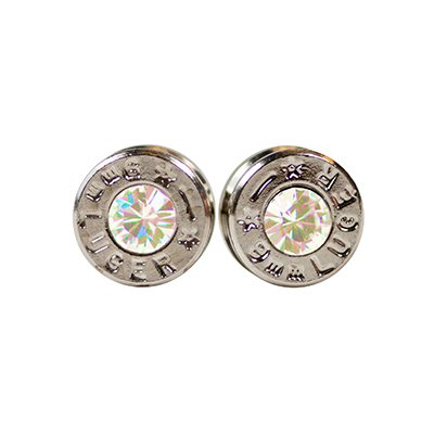 -. Title : Silver Plated Bullet Shell Stud Earrings with Opal Swarovski Crystals