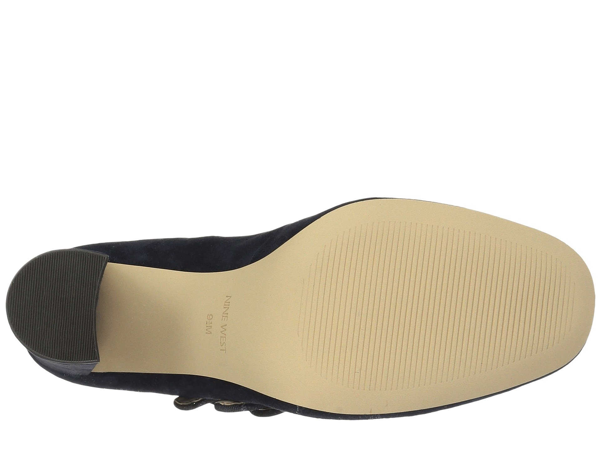 | Product Information SKU: #8968987From downtown-casual to uptown-chic, the Nine West? Dabney pump will take you anywhere that you need to go.Available in a variety of upper materials.Please note: upper material is listed in the color name.Dual straps over vamp with adjustable buckle closures.Round toe.Contemporary mary jane silhouette.Man-made lining.Lightly padded, non-removable footbed.Wrapped, half-moon block heel.Man-made outsole.Imported.Product measurements were taken using size 5, width M. Please note that measurements may vary by size.Weight of footwear is based on a single item, not a pair.Measurements: Heel Height: 3 3?4 in Weight: 12.3 oz |