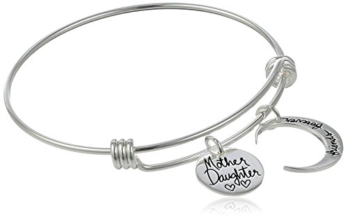 Sterling Silver Adjustable "Mother Daughter Friends Forever" Charm Bangle Bracelet