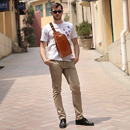 -. Title : Leathario Mens Leather Sling bag Cross body Bag Chest Bag Sling Shoulder Backpack
