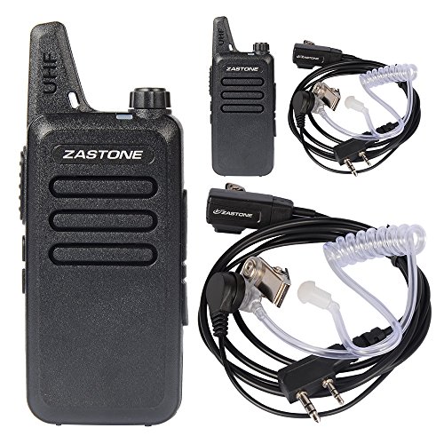 Zastone X6 Walkie Talkie UHF 400-470 MHz MINI-handheld Two Way Radio Transceiver 2 Pack + 2 PCS Zastone 2-Pin Covert Air Acoustic Earpiece Headset