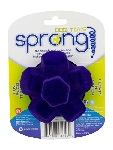 -. Feature : Sprong! toys combine a soft, velvety outer-layer with a super squeezy, rubber foam inner-layer that's designed to be gentle on dogs' jaws and teeth. / Sprong! toys are great for senior dogs, gentle chewers or dogs with dental issues | Not suitable for heavy chewers, and puppies who like to shred toys! / Squishy foam makes Sprong! toys ultra-bouncy & a super-sensitive squeaker guarantees a squeak with every bounce. | The innovative design that is engineered to be dog-friendly / The Sprong Hex Ball is great for a game of fetch and a good size for small and medium dogs / Pets should always be supervised when playing with this or any other toy. Remove toy from pet if any part becomes loose, damaged or detached. Intended for pets only. Not a children's toy