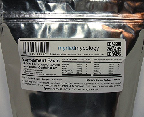 -. Feature : POWERFUL 10 MUSHROOM BLEND: Ten proven medicinal mushrooms in a single formula. Reishi (Ganoderma lucidum), Cordyceps (Cordyceps sinensis), Lion's Mane (Hericium erinaceus), Chaga (Inonotus oliquus), Turkey Tail (Trametes versicolor), Maitake (Grifola frondosa), Shiitake (Lentinula edodes), Blazei (Agaricus blazei), Agarikon (Laricifomes officinales), and Mesima Sang-Huang (Phellinus linteus) / HIGHLY SYNERGISTIC: Studies indicate that this paleo and keto friendly blend of mushroom powders each has a unique set healing properties. Together, mushroom blends have a highly synergistic effect on the body when consumed in a single powder blend. / GROWN IN THE USA: Our mushroom powders are grown in a manner exceeding industry standards to provide the highest quality product possible. Medicinal mushroom extracts are dried to a moisture level below 8 percent and are ground to a fineness of 200 to 500 microns. They are then activated through a steam process to make the constituents readily bioavailable for maximum potency. Our mushroom supplement extracts exceed 15 percent Beta-glucans. / TASTES GREAT: This smooth powder makes it easy to add a quick nutrient boost to any dish. Tastes great in mushroom coffee, teas, smoothies, soups, prepared foods, tonics, and herbal formulas. / HIGHEST QUALITY WITH NO FILLERS: The mushrooms and mycelium are grown on a certified organic substrate utilizing current good manufacturing procedures. The myceliated brown rice is not a filler, it is the growing medium. To ensure the highest quality product each lot is sent to an independent lab for microbial testing and analysis before shipping.