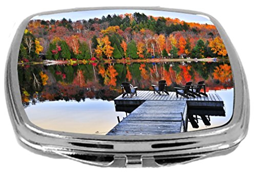 Rikki Knight Compact Mirror, Wooden Adirondack Chairs on Dock on Autumn Lake, 3 Ounce