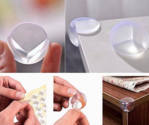 Specification: It is designed for protecting baby to avoid accidental danger, which is caused by hitting table or counter corners. The material of this guard is PVC that is safe and flexible. It is easy to remove, and will not impact the beauty of furniture. Installation direction: 1. Clean up dirt, oil or dust of surface and inside of the guard, then allow to dry completely. 2. Remove three adhesive backing and apply to the inside of guard, and then compact the guard to the corner on proper position. Please press down firmly to avoid air bubbles. Warning: All three inner layer surfaces of the guard must be applied to the adhesive. This is not a toy, please do not give children to play to avoid accidental ingestion. Please do not touch the sticker by hand or stick it repeatedly, which will make the sticker weak to use. Adult supervision cannot be replaced by this guard. Please stop using when the adhesive is no longer secure. Package includes: 12 * Corner guards with adhesive