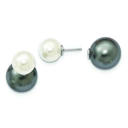 ICECARATS DESIGNER JEWELRY 925 STERLING SILVER MAJESTIK 11MM 14 15MM SEA SHELL MERMAID NAUTICAL JEWELRY PEARL GREY/WHITE BALL BUTTON STUD EARRINGS